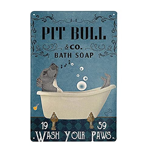 Retro Bathroom Quotes Tin Sign Wall Decor Funny Dog Pit Bull Bath Soap Tin Sign 11 8x7 9 Inch Unique Wash Your Paws Bath Signs For Home Dorm Hotel Bathroom Wall Decor Idea Gifts